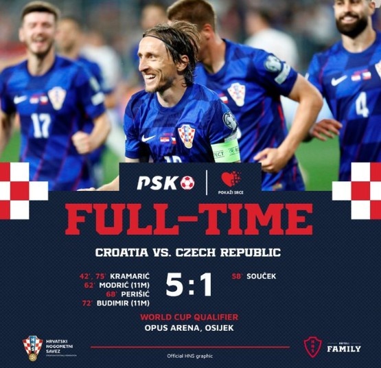 1BSPORTS 1B Sports June 10 In the group stage of the World Cup qualifiers, Croatia faced the Czech Republic at home, and the home team finally won a 5-1 victory. After slapping Gibraltar 7-0 in the last game, Croatia ushered in a big victory again.