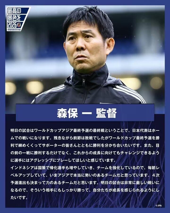 1BSPORTS 1B Sports June 10th Beijing time tonight, the Japanese team will face Indonesia at home. During the interval between yesterday’s training, Japanese team head coach Poichi Mori accepted an official interview with the Japanese team and talked about the game.
