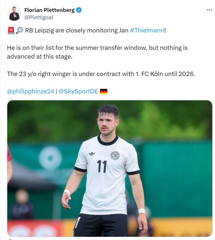 1BSPORTS 1B Sports June 10th According to German Sky Sports reporter Pretenberg, Leipzig is interested in Cologne 23-year-old winger Tillman.
