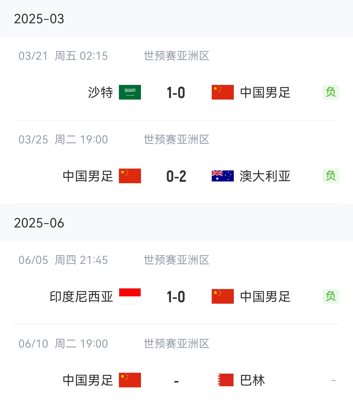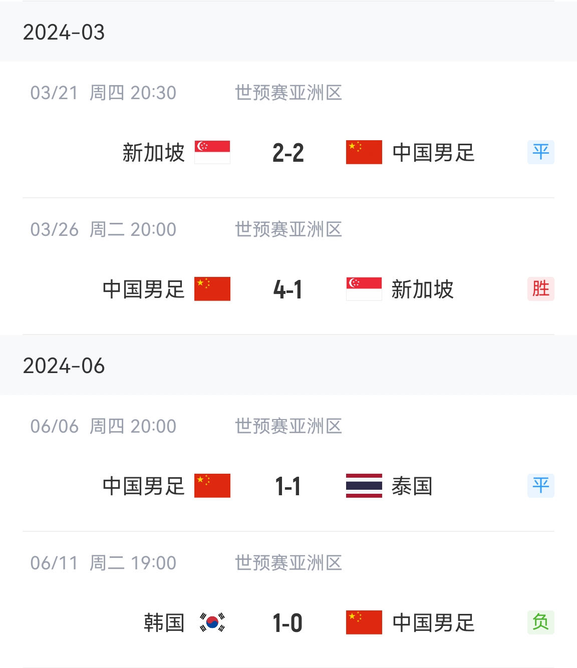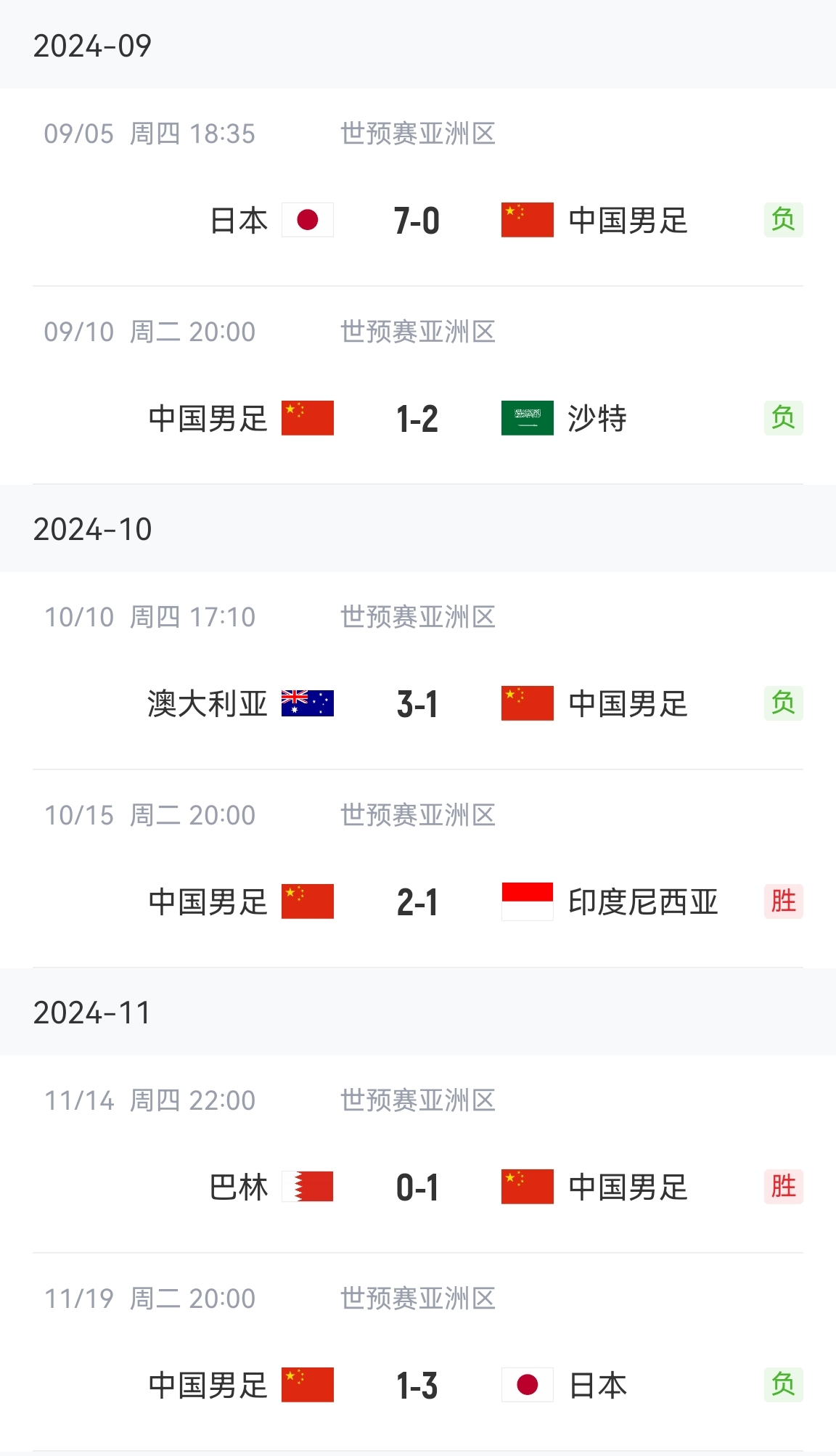 Entered the top 18 matches, the national football team lost 0-7 to Japan and set a number of shameful records. They lost a good game at home in the second game and were reversed by Saudi Arabia 1-2. But in the last two World Cup qualifiers in 2024, the Chinese national football team beat Indonesia and Bahrain in a row, and finally scored 6 points after 6 rounds, only 1 point away from the second in the group.