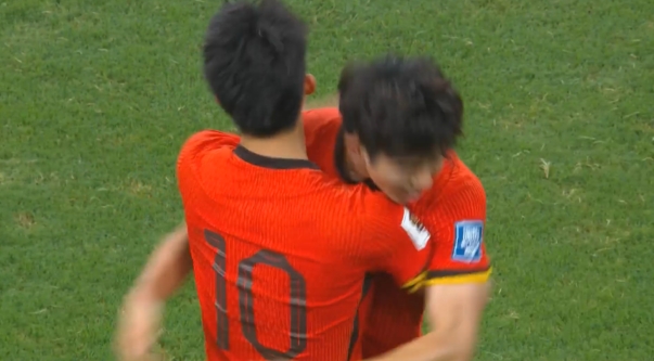 1BSPORTS 1B Sports June 10th news The national football team defeated Bahrain 1-0, and 18-year-old Wang Yudong scored the first goal of his own national football team. After the game, 18-year-old Liu Chengyu and Wang Yudong hugged and brimmed their high-fives to celebrate.