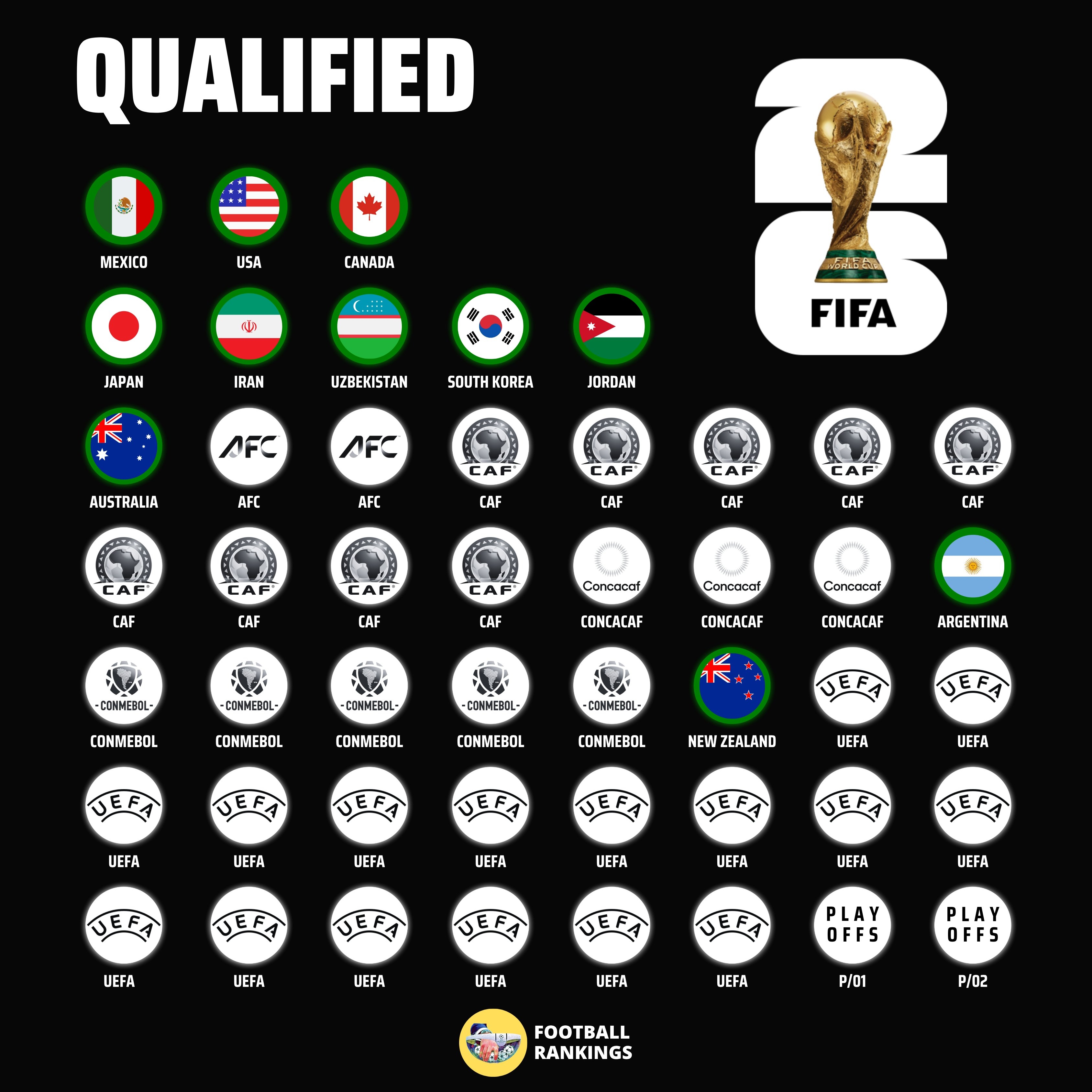 Asia: Japan, Iran, South Korea, Uzbekistan (first in history), Jordan (first in history), Australia