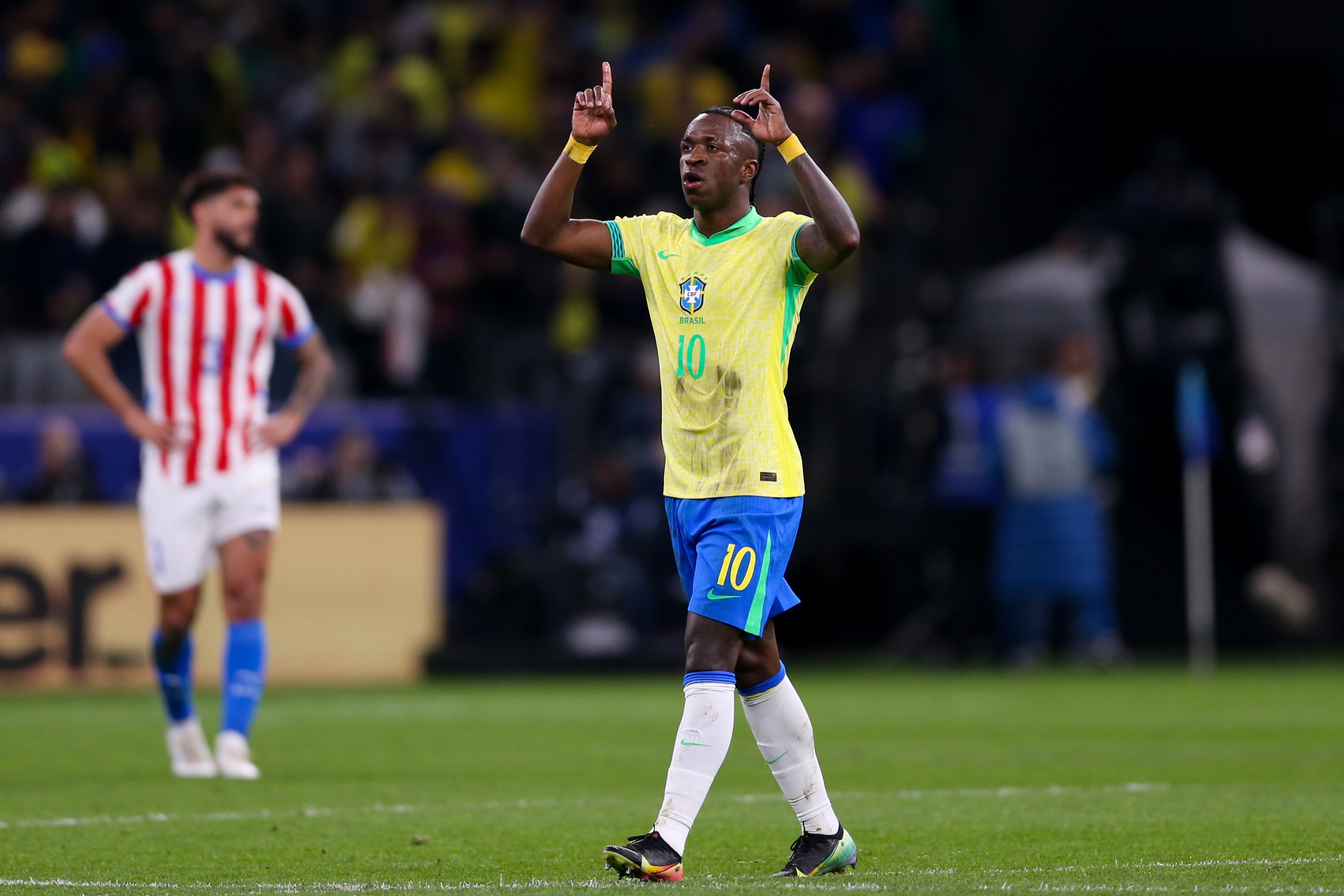 1BSPORTS 1B Sports June 11 On the morning of June 11, Beijing time, in the 16th round of the World Cup South America, Brazil defeated Paraguay 1-0 at home and qualified early. Vinicius, who scored for the Brazilian team, was interviewed after the game.
