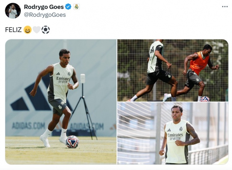 Real Madrid is preparing for the Club World Cup. Rodrigo, who missed the last few games of the season due to injury, trained with the team. He posted training photos on social media and wrote: Happy.