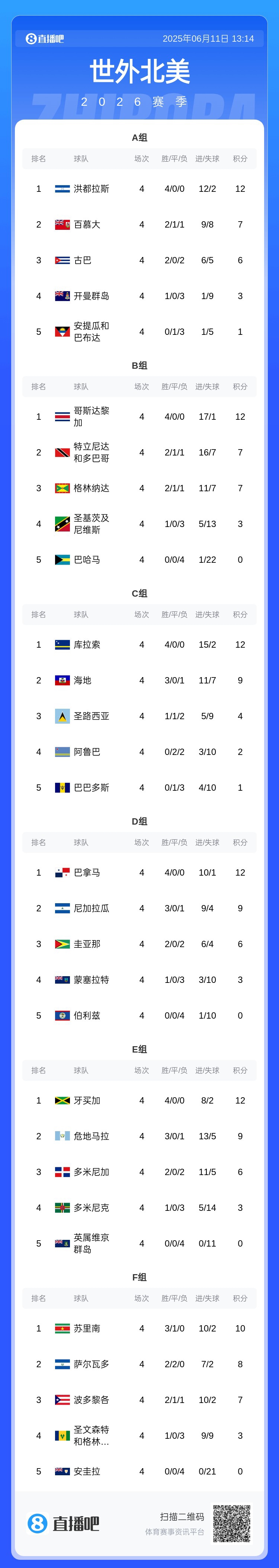 1BSPORTS 1B Sports June 11th News After the second round of the 2026 World Cup qualifiers, 30 teams were divided into 6 groups, and the first two teams advanced. A total of 12 teams entered the third round, including Bermuda, which ranked 168th in FIFA.