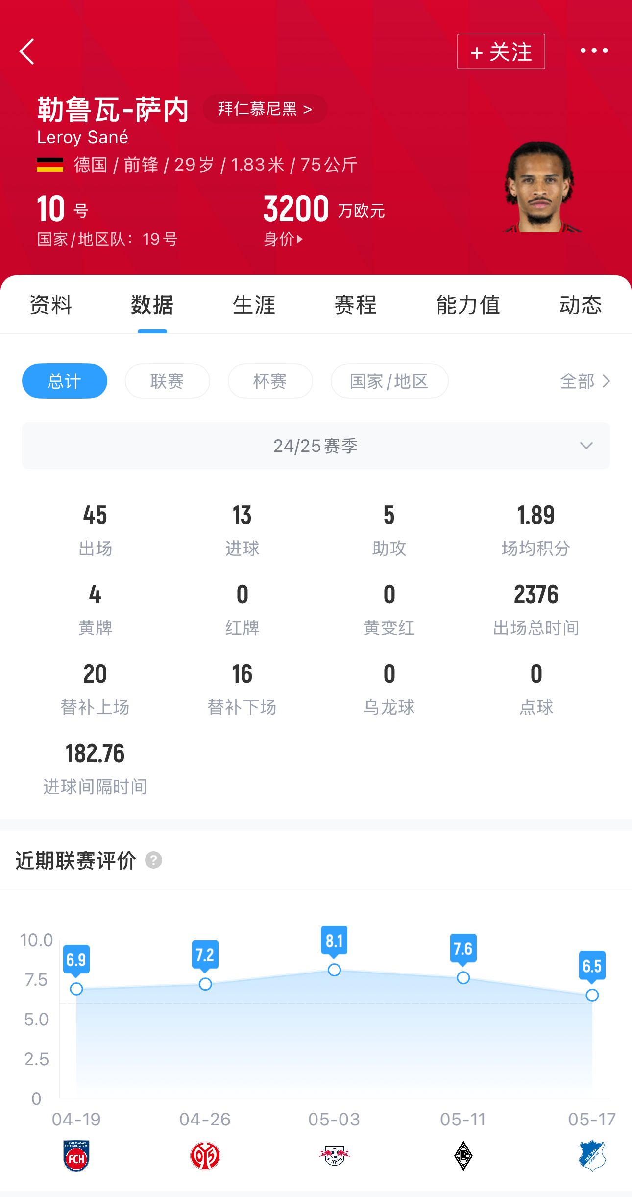 Sane played 45 games for Bayern this season, scoring 13 goals and assisting 6 times. The player is worth 32 million euros.