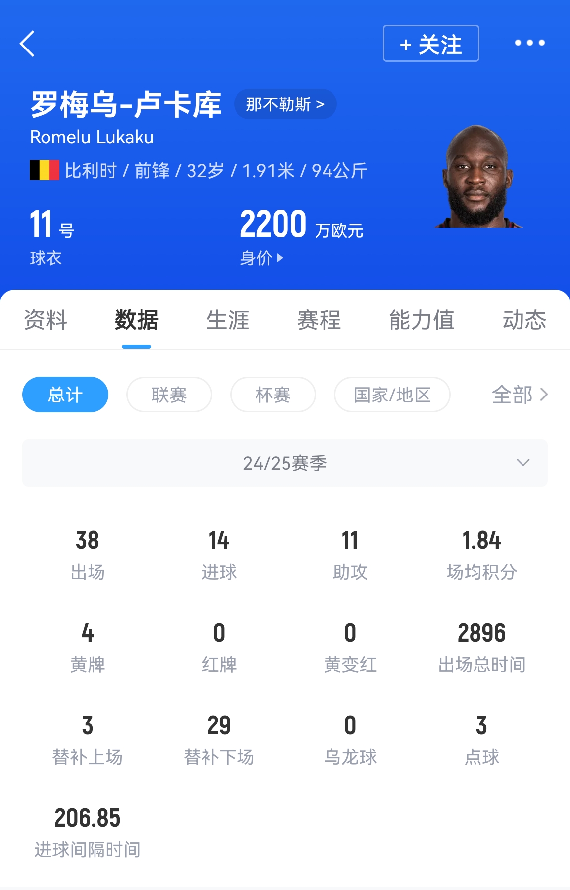 In the 2024/25 season, Lukaku made 38 appearances for Napoli, scoring 14 goals and 11 assists, helping Napoli win the Serie A championship. With the support of De Bruyne, everyone can predict how much improvement will Lukaku’s data in next season?