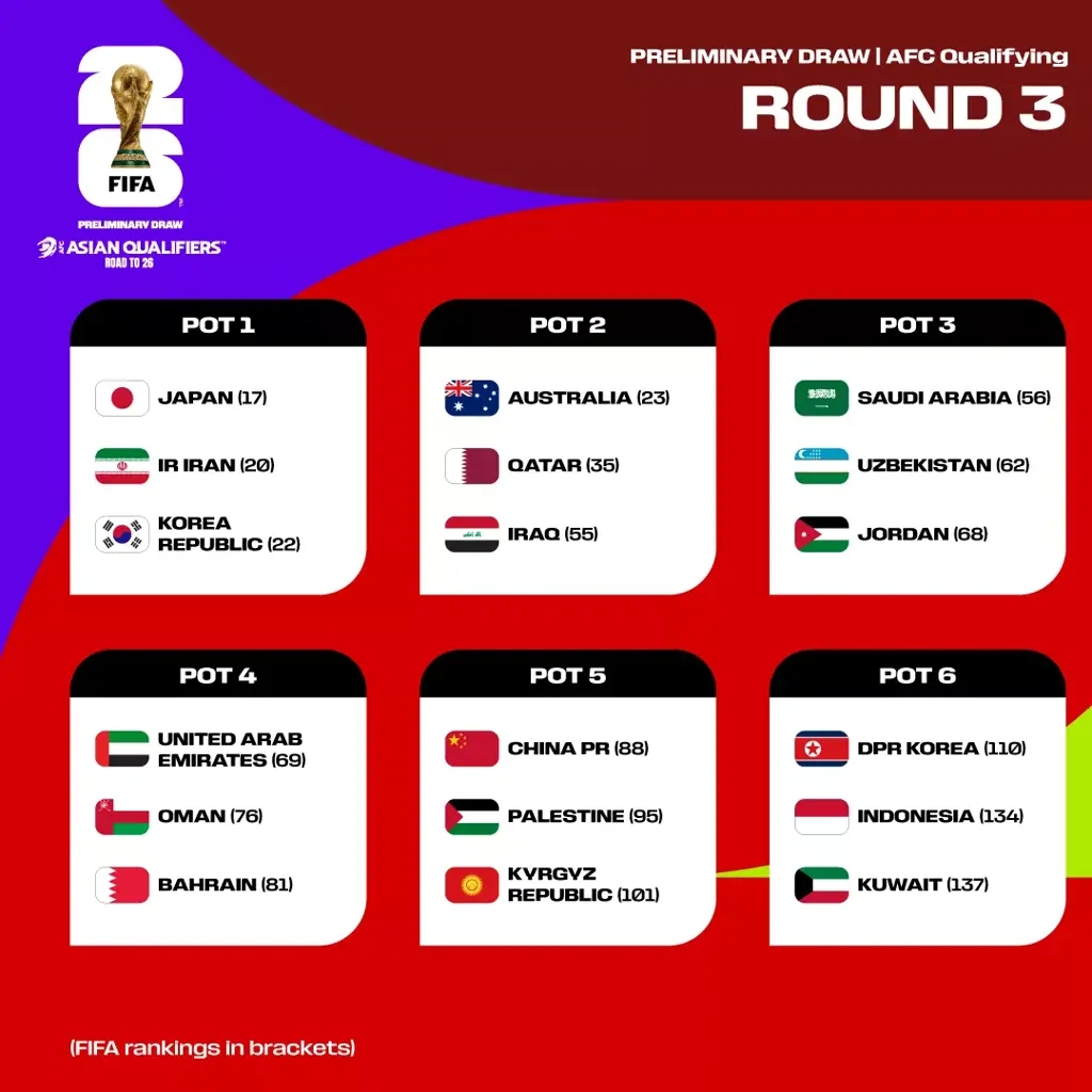 1BSPORTS 1B Sports June 11th The third phase of the Asian qualifiers in the World Cup (First 18th round) has all ended. According to the divisions in the draw of the quarterfinals, Japan, South Korea and Iran of the first teams all advanced to the World Cup as the first place, and only Australia went straight to the second teams, Iraq and Qatar entered the fourth stage, and two third teams Uzbekistan and Jordan participated in the World Cup for the first time in history.
