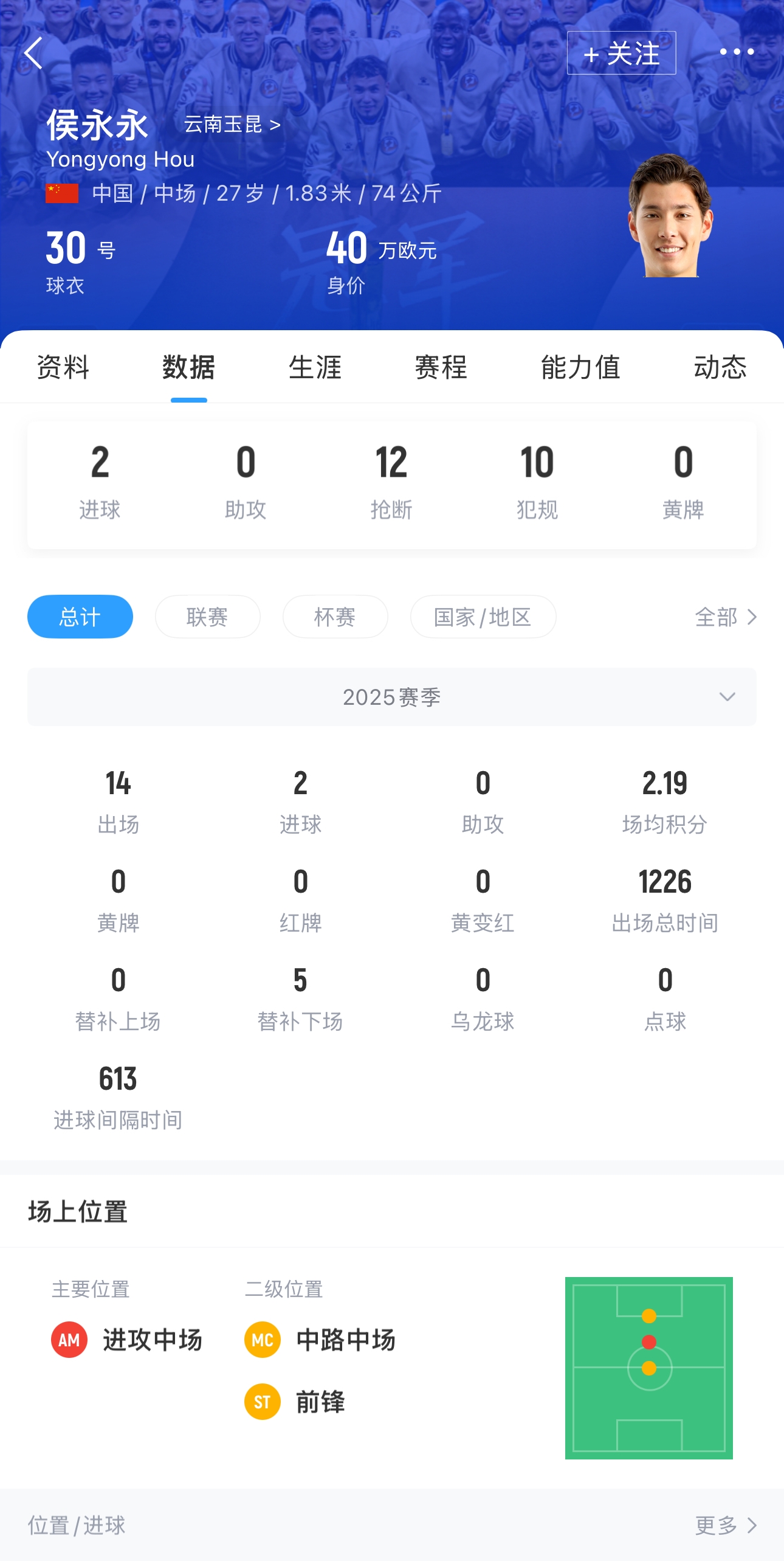 Hou Yongyong was selected for the national football roster for the first time in January this year, but has not been selected for the World Cup roster since then. Before the national football team match against Balin, due to multiple injuries, Hou Yongyong was selected for the recruitment.