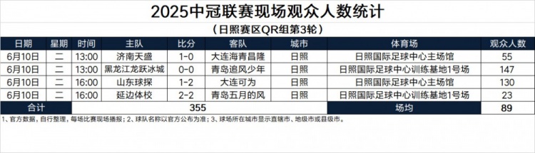 Statistics of the number of spectators in the 2025 Chinese Championship League (Rizhao Division QR Group 3) ​​​
