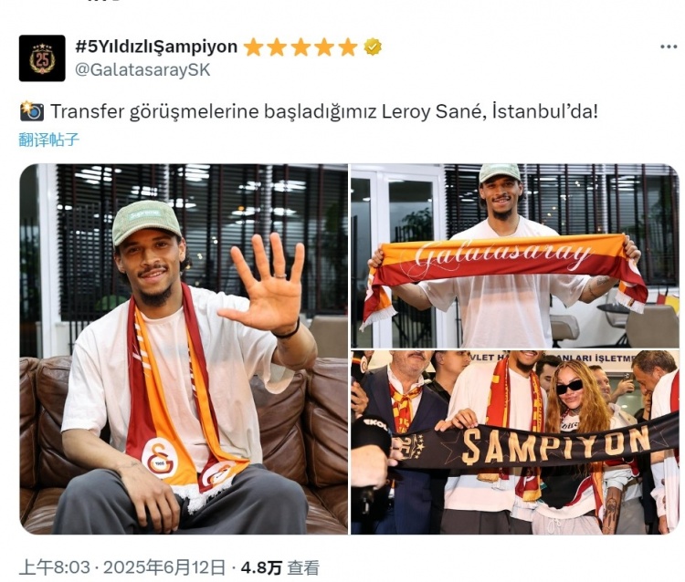 1BSPORTS 1B Sports June 12th Galatasaray updated his social media updates and posted photos of Sane arriving in Istanbul.