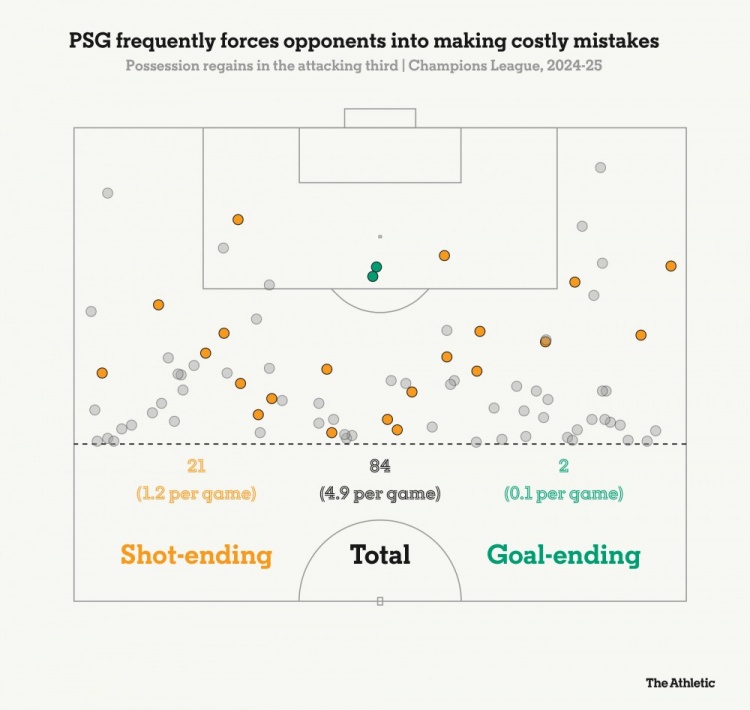 Paris Saint-Germain often forces opponents to make costly mistakes in the 24/25 Champions League season