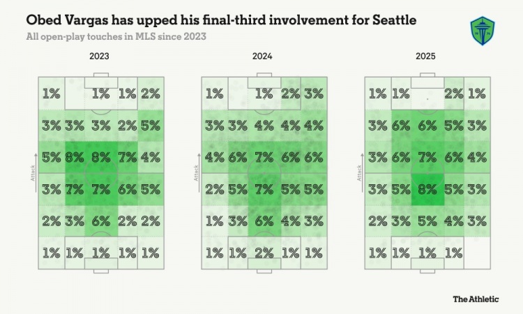 He fully enjoyed the newly obtained frontcourt freedom, with a pass success rate of 84.2% in the offensive third-district, leading all Seattle Bayermen midfielders; at the same time, he also ranked among the top players in the same position in terms of forward pass attempts after every hundred touches. Despite being born in the northernmost state of the United States, Vargas has submitted a one-time conversion application to FIFA, choosing to play for Mexico, and made his national team debut in a friendly match against the United States in October last year.